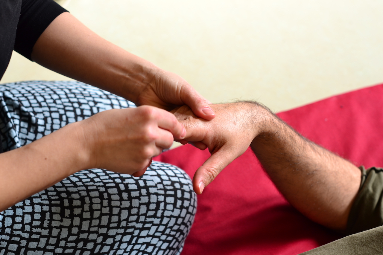 Bij acupressuur wordt het herstellen en balanceren van energie bereikt door met de duim specifieke accupuntuurpunten in te drukken.